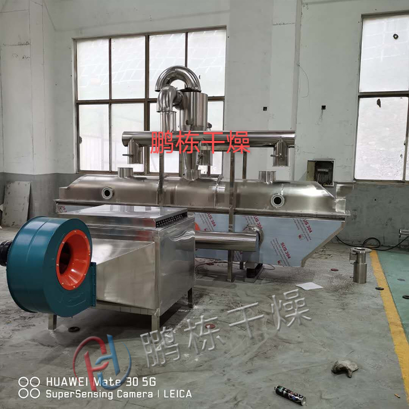 流化床干燥机是由物料自进料进口进入机内,在振动力作用下,物料沿水平面流化床抛掷,向前连续运动,热风向上穿过流化床同湿物料换热后,湿空气经旋风分离器除尘后由排风1:3排出,干燥物料由排料进口排出。适用于化工、医药、食品、脱水蔬菜、粮食、矿产等行业的粉状、颗粒状物料的干燥、冷却等作业。
