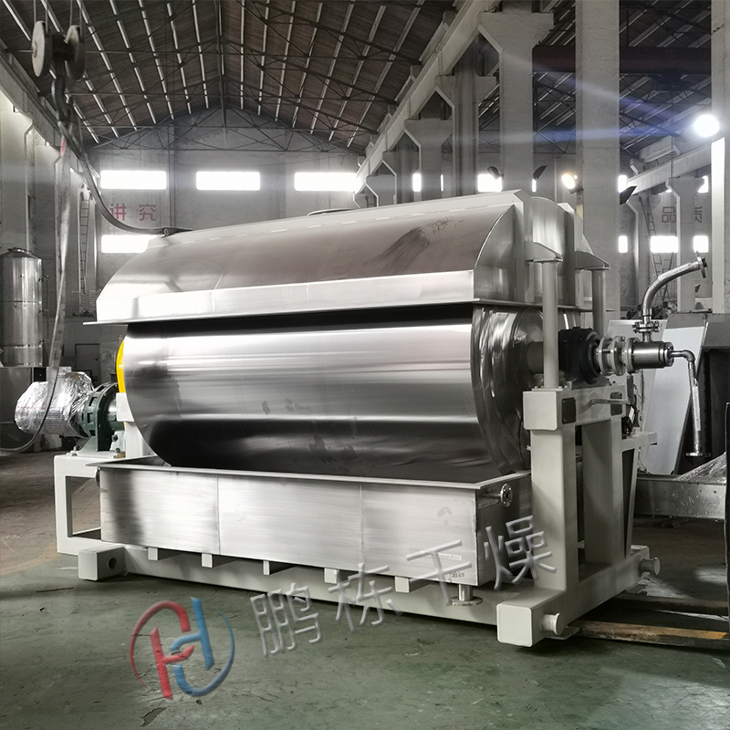 Let the liquid or slurry material form a film on the surface of the drum heated by water vapor or other heat carrier, and it will be dried during the process of one turn of the drum. Use a scraper to scrape off the product, and the exposed surface of the drum will contact the raw material again and form a film for drying.