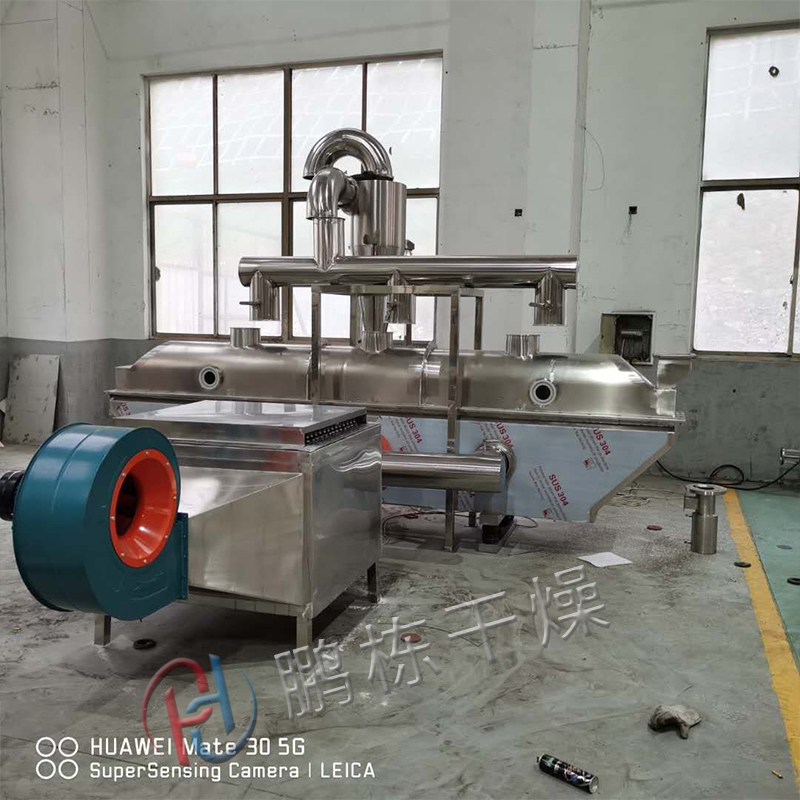 The material enters the machine from the feed inlet. Under the action of vibration force, the material is thrown along the horizontal fluidized bed and moves forward continuously. After the hot air passes upward through the fluidized bed to exchange heat with the wet material, the wet air is removed by the exhaust air 1:3 and the dry material is discharged from the discharge inlet.