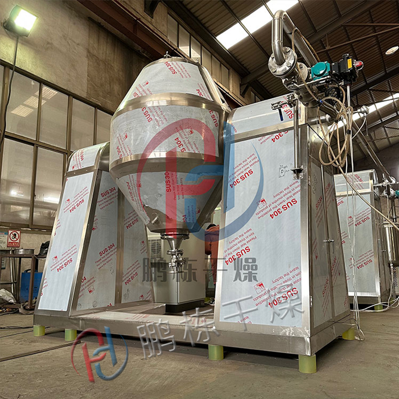 ● The machine will powder or granular materials through vacuum transport or artificial feeding into the double-cone container, with the continuous rotation of the container, the material in the container for complex impact movement, to achieve uniform mixing.