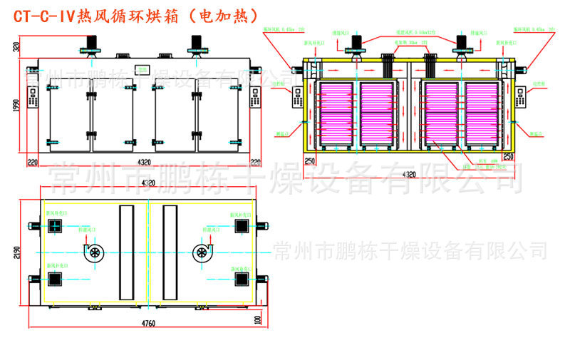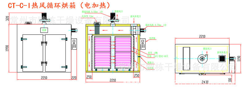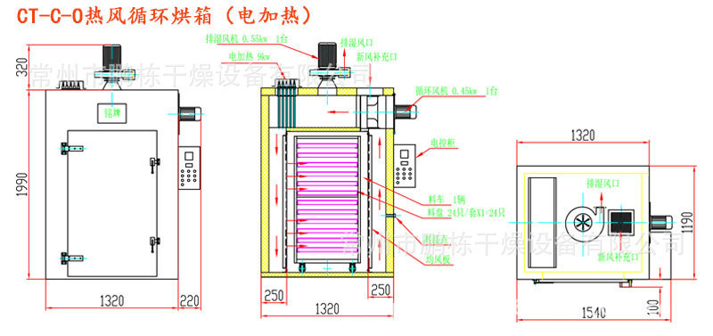 2, the use of forced ventilation, the oven is equipped with an air duct, the material dry evenly.